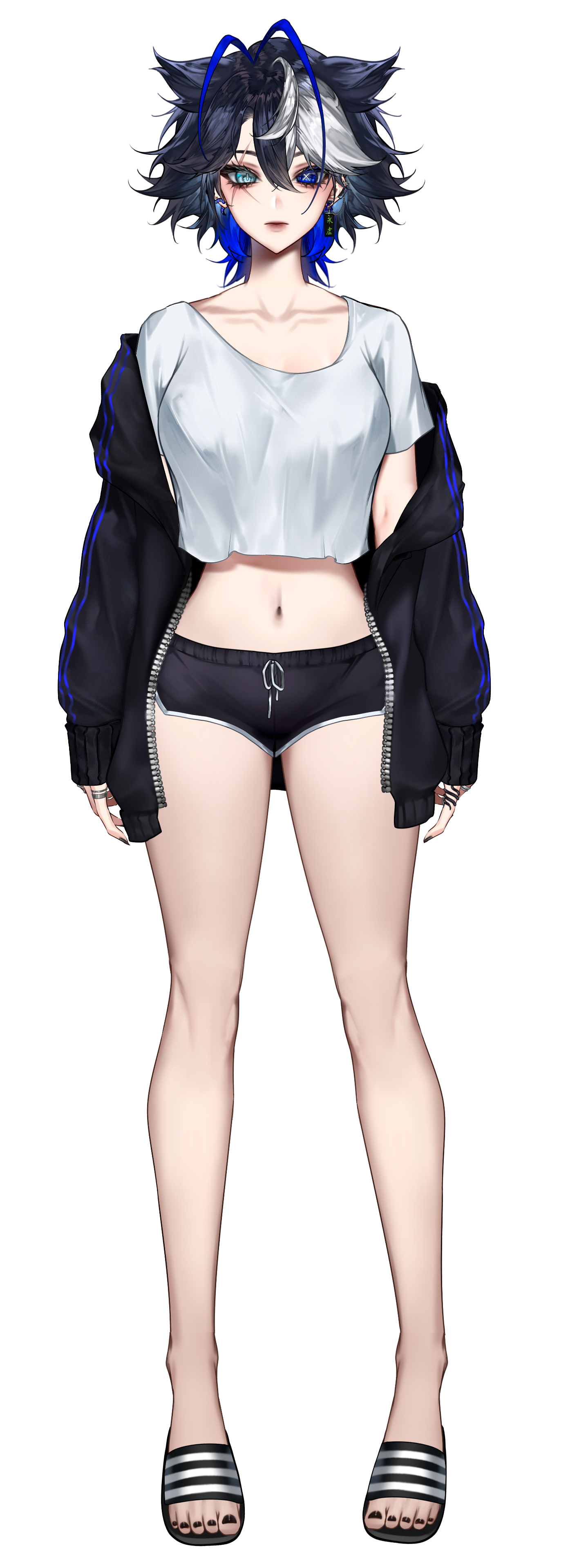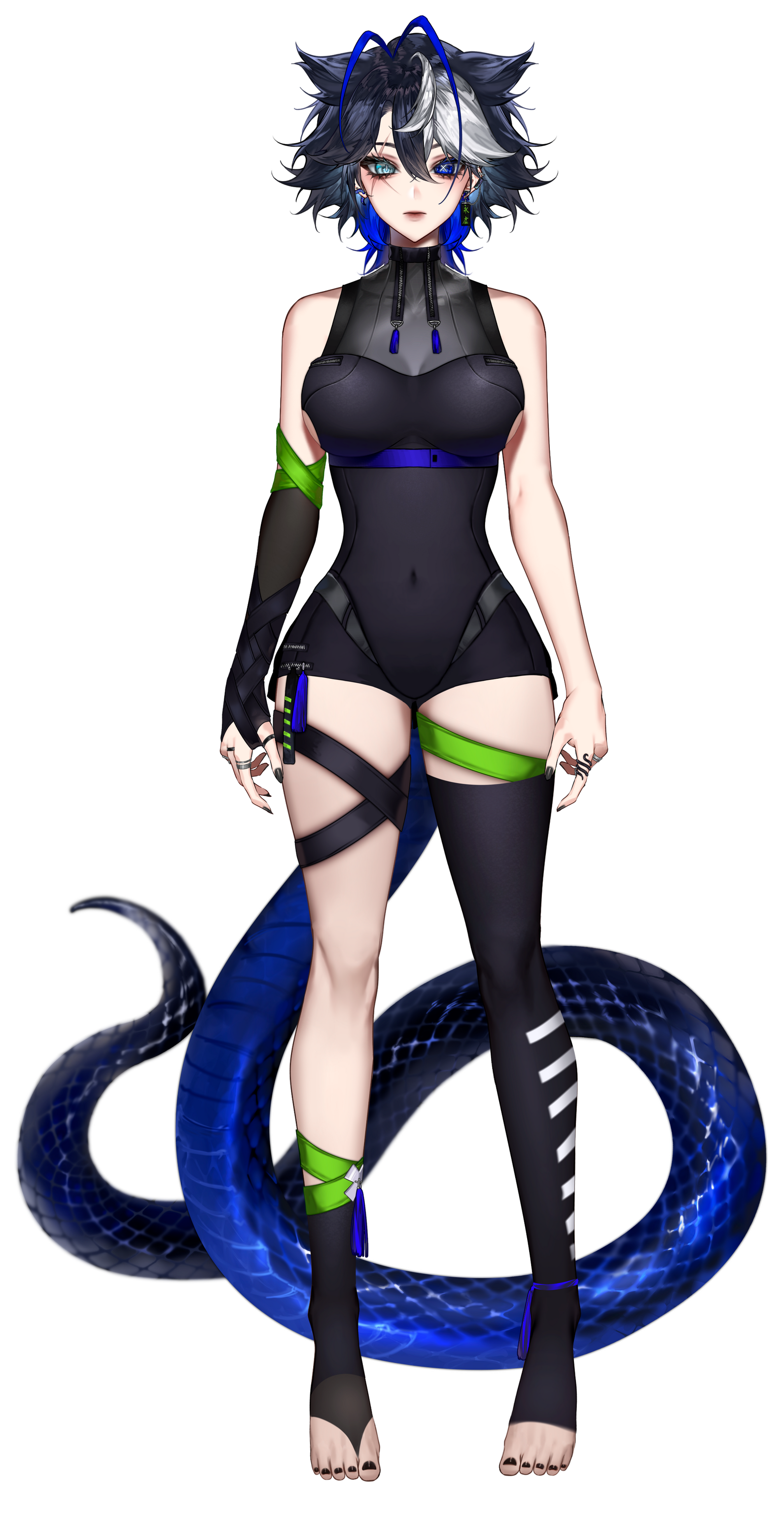 Hair Color: Blue-ish black with teal underneath and white bangs